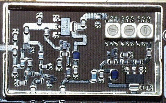 Weiterhin konnte die Ausgangsleistung der Endstufe noch durch Verdrehen des weißen Kondensators in der Nähe des Endstufentransistors (ungefähr Platinenmitte) erhöht werden. Es wurden max. 25 Watt Ausgangsleistung erreicht.